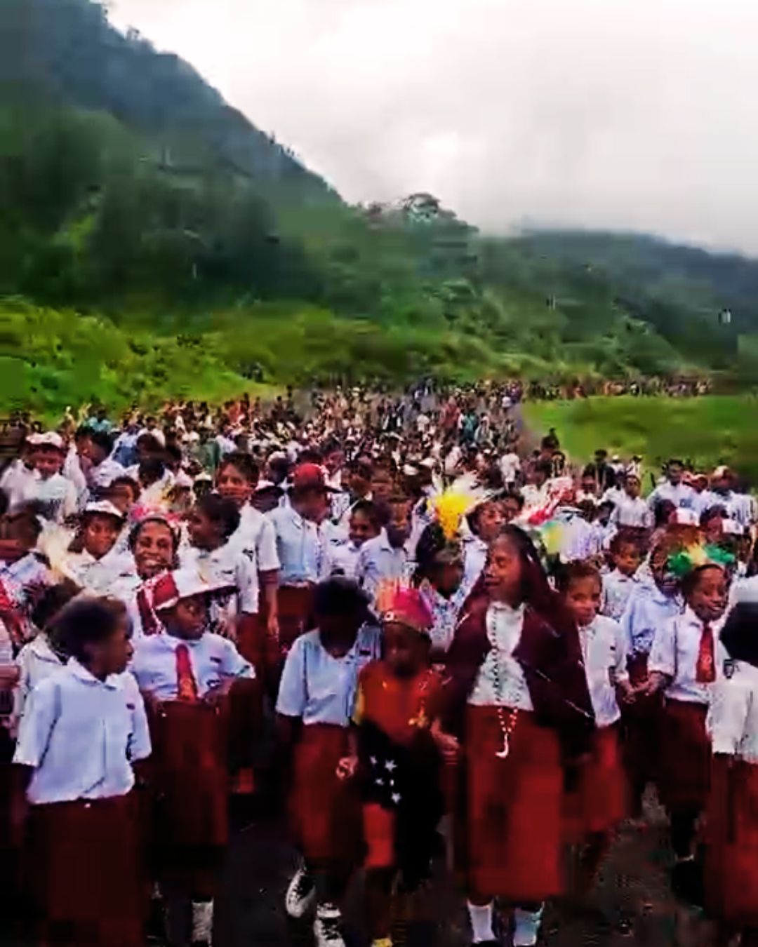 Tampak dalam gambar, Inilah keceriaan anak-anak sekolah di Kabupaten Pegunungan Bintang, khususnya di wilayah Eipumek.