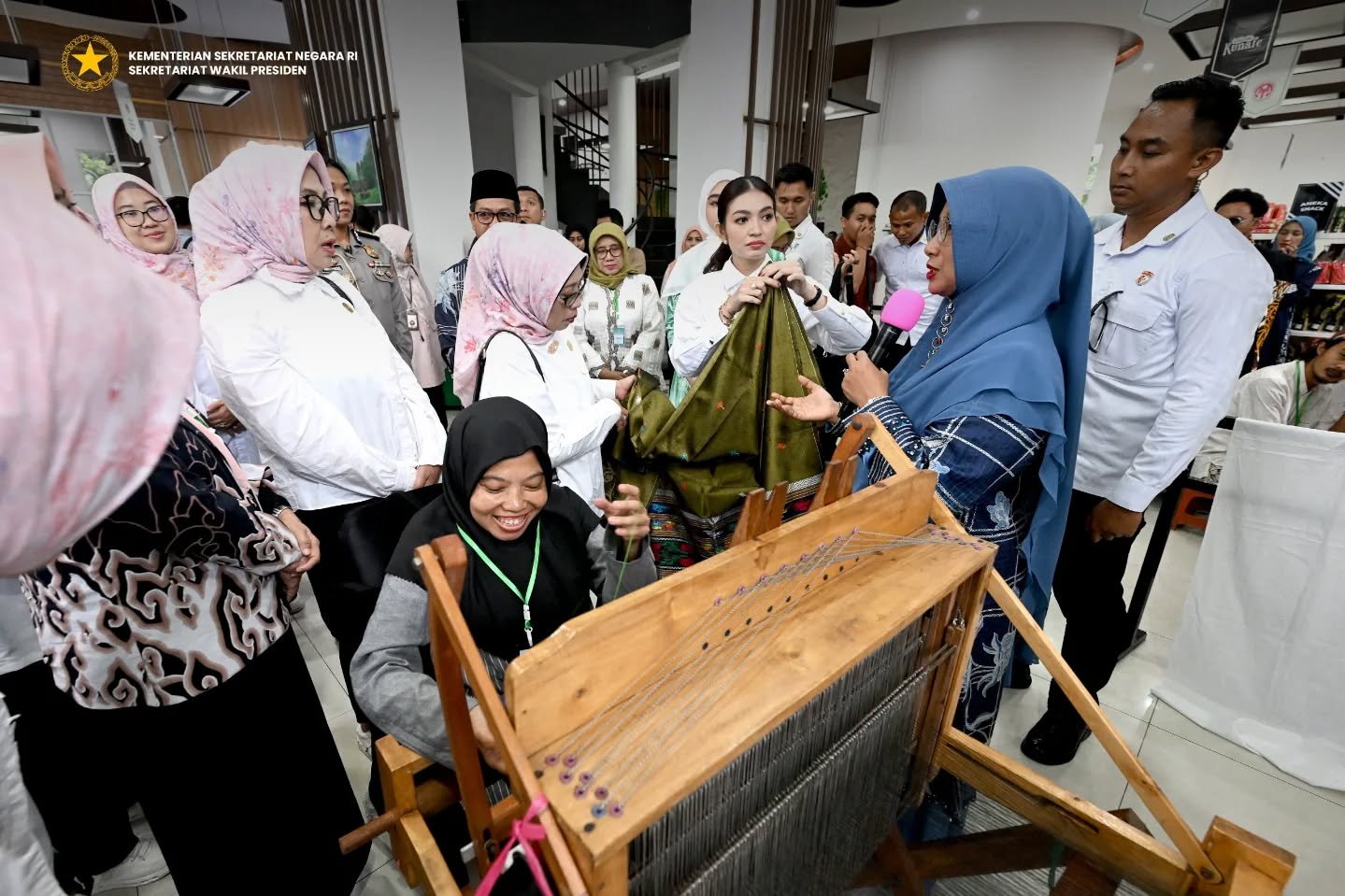 BANDUNG, [OKMINTV.com] – Mengakhiri kunjungan kerjanya di Bandung, Ibu Selvi Gibran Rakabuming selaku Ketua Umum Dekranas bersama Seruni KMP meninjau proses pembuatan batik Kina dan produk UMKM lokal di Griya Dekranasda yang terintegrasi dengan Mal Pelayanan Publik (MPP) Soreang, Rabu (22/10/2025).