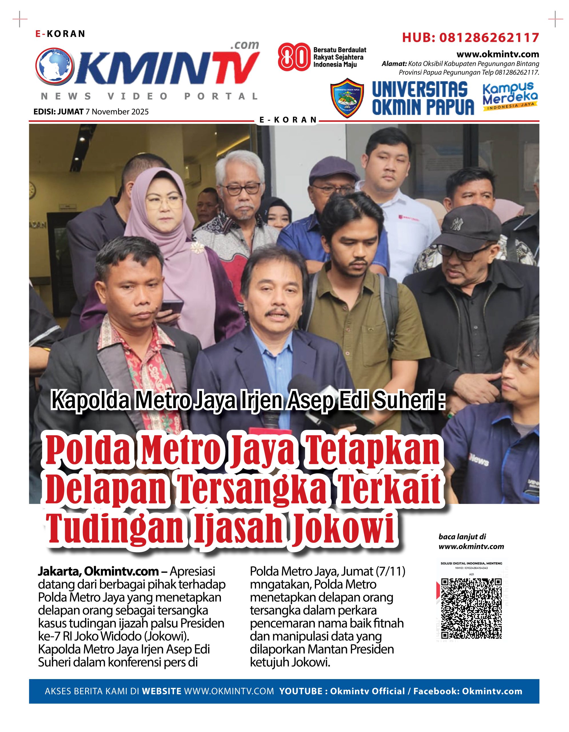 Jakarta, Okmintv.com – Apresiasi datang dari berbagai pihak terhadap Polda Metro Jaya yang menetapkan delapan orang sebagai tersangka kasus tudingan ijazah palsu Presiden ke-7 RI Joko Widodo (Jokowi).
