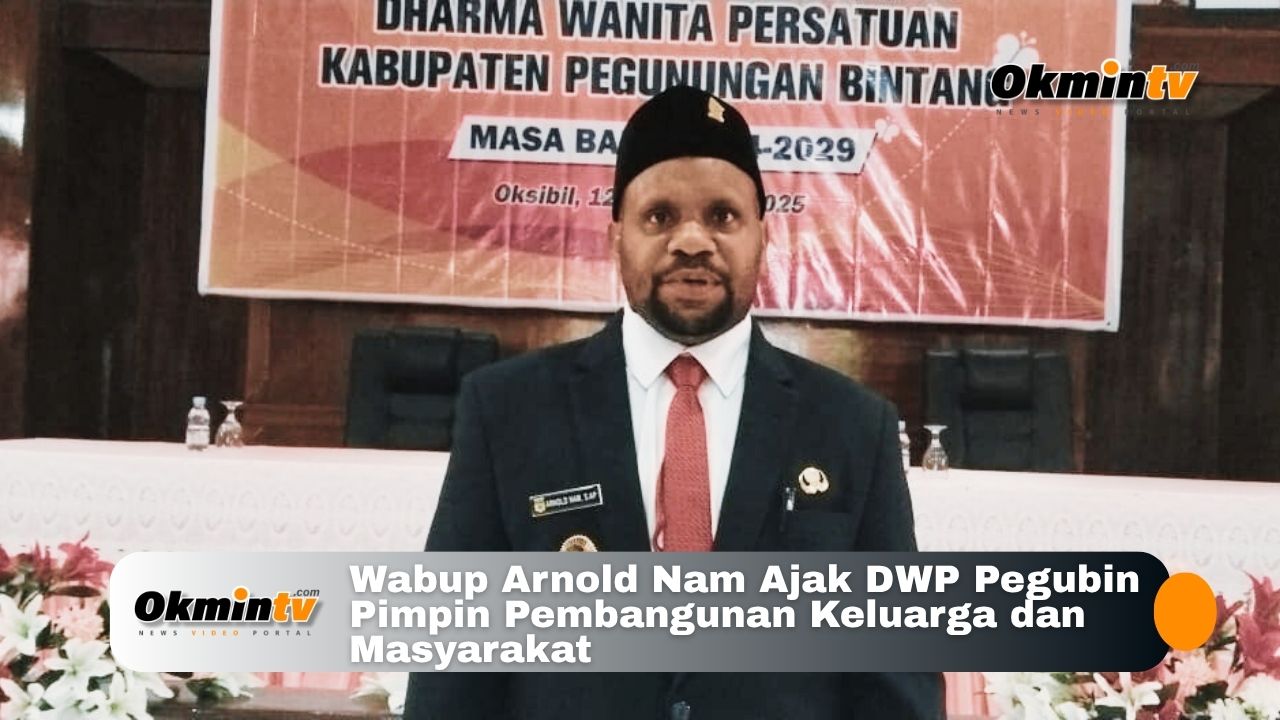 Oksibil,OKMINTV.COM —Wakil Bupati Pegunungan Bintang, Arnold Nam, S.AP, mengajak Dharma Wanita Persatuan (DWP) Kabupaten Pegunungan Bintang untuk menjadi garda terdepan dalam pembangunan keluarga dan masyarakat. Ajakan ini disampaikan dalam acara pengukuhan pengurus DWP Kabupaten Pegunungan Bintang pada masa bakti 2024–2029 yang berlangsung di Gedung Aula Kantor Bupati, Selasa (12/11/2025).