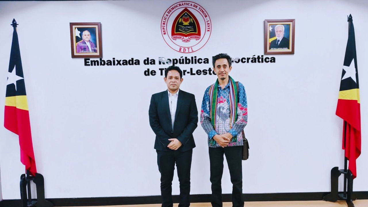 JAKARTA – OkminTV.Com, Freni Lutruntuhluy, paid a courtesy visit to the Embassy of Timor-Leste in Jakarta on Monday, 17 November 2025. He was warmly received by Mr. Apolo Justino França Da Silva, the Trade and Industry Attaché at the Timor-Leste Embassy in Indonesia.