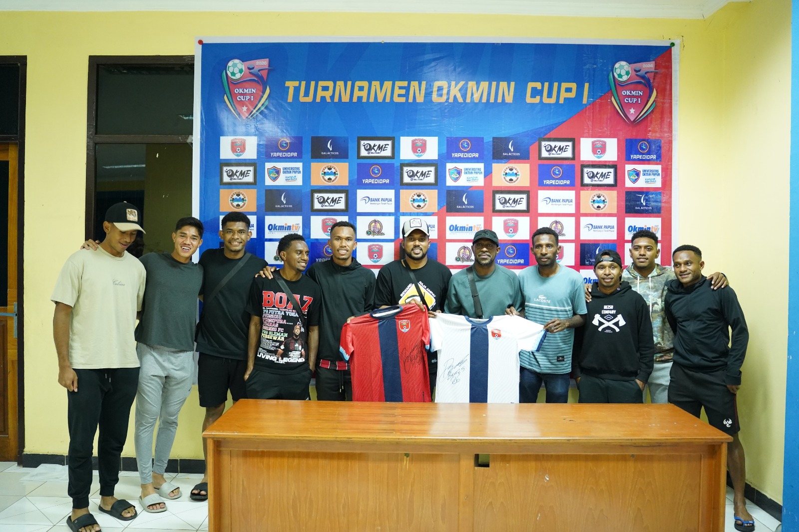 Sebagai Ketua Panitia, Imanuel juga menyampaikan terima kasih karena Boaz Salosa telah tandatangani baju kaos Okmin United yang nantinya sebagai Doorprize kepada para supporter yang beruntung saat final nantinya.